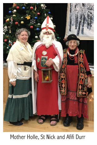 St. Nicholas – Nicholas of Myra was a Christian Bishop in Lyria (now Turkey) known for his kindness, his care for those in need, his love of children and of giving anonymous gifts. Beloved by all branches of Christianity – he became the model for all of Santa's helpers.