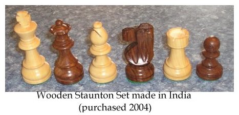 I had a Plastic Red and White Weighted Staunton set, which saw a lot of use at lunches and after school in the cafeteria until it was stolen at lunch. Unable to get another Red and Ivory one, I got the Black and White Plastic Staunton one which I still have.