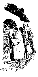 The earth and the air and the sky were all still, just as it is at twilight, and I heard them laughing and talking in the tap-room of the Inn of the Sign of Mother Goose -- the linking of glasses, and the rattling and clatter of knives and forks and plates and dishes. That is where I wished to go. So in I went. Mother Goose herself opened the door, and there I was.