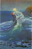 A master of black and white engraved illustration, he was one of the first illustrators to make the transition to the Four Color printing method -- early experiments included the disappointing Lady of Shallot (1882), and illustrations for Harpers Monthly for "The Pilgrimage of Truth" (1900) and "North Folk Legends of the Sea" (1902) which included The Mermaid.
